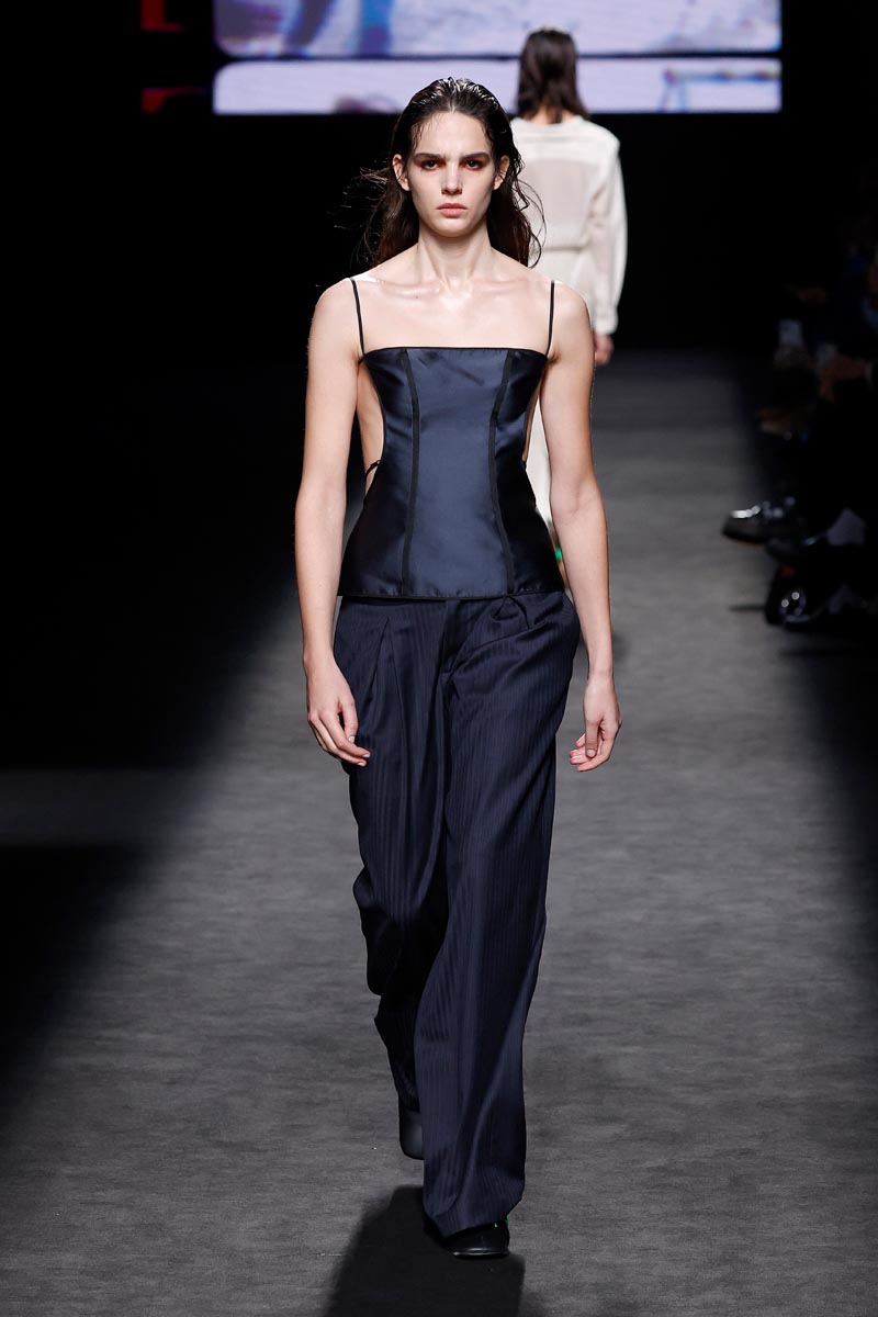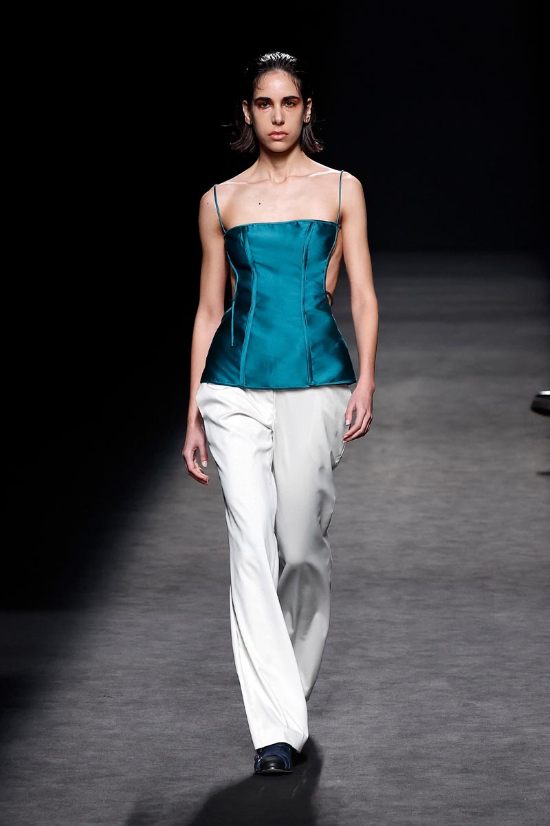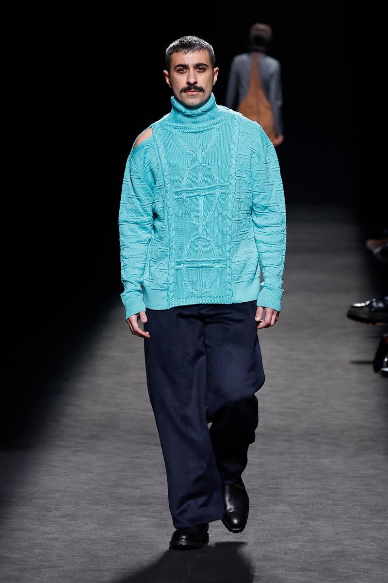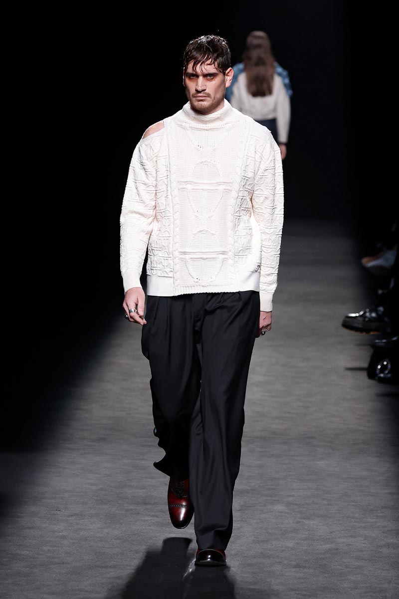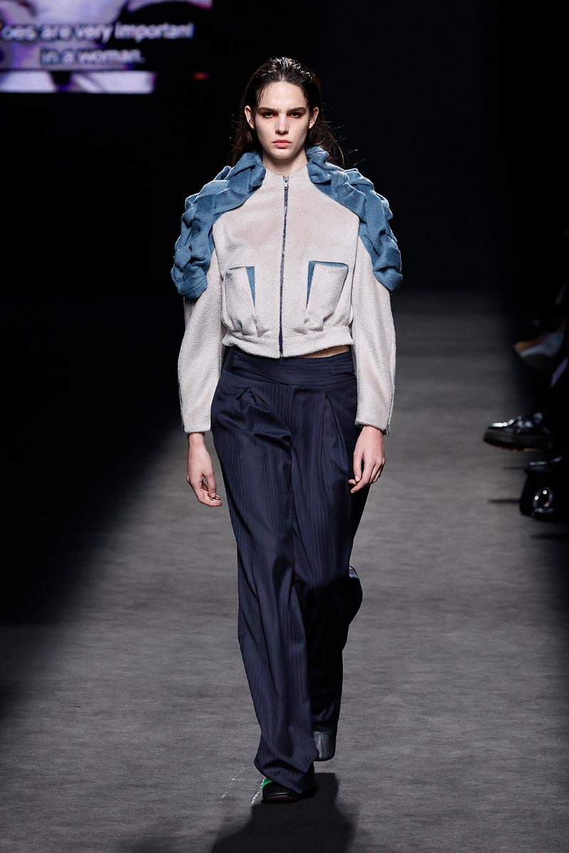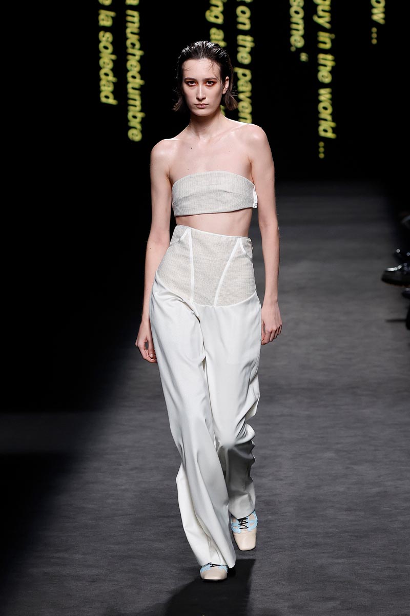 The collection is made up of hybrid elements: cottons, garments that are made from other different ones, patterns that configure new silhouettes and different textured blends such as denim and alpaca or cold wool and mohair. Works of corsetry reconstructed, decontextualized in gender and use, twisted garments, as if fighting within themselves and around the bodies, which in turn shelter and wrap them.