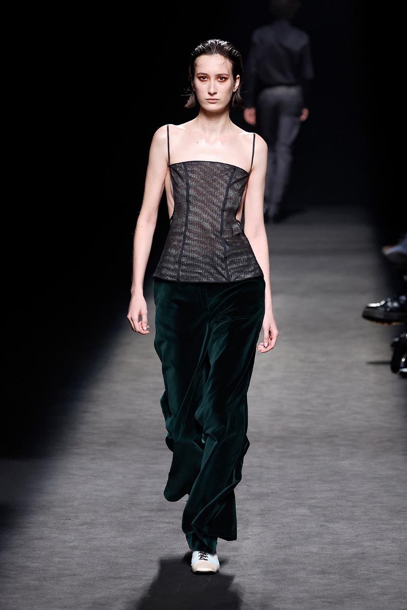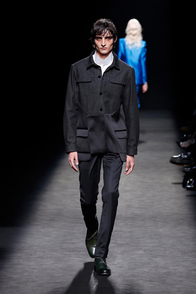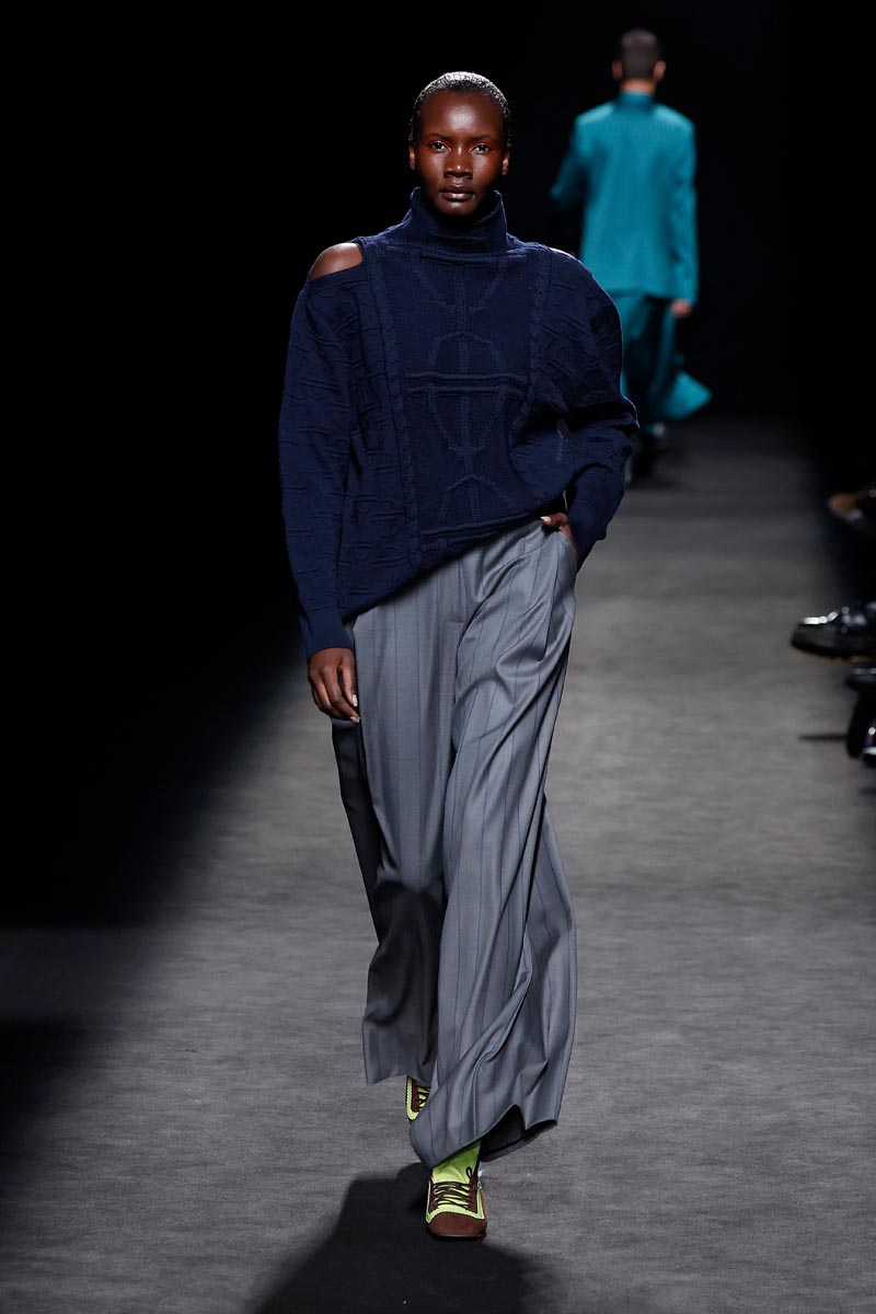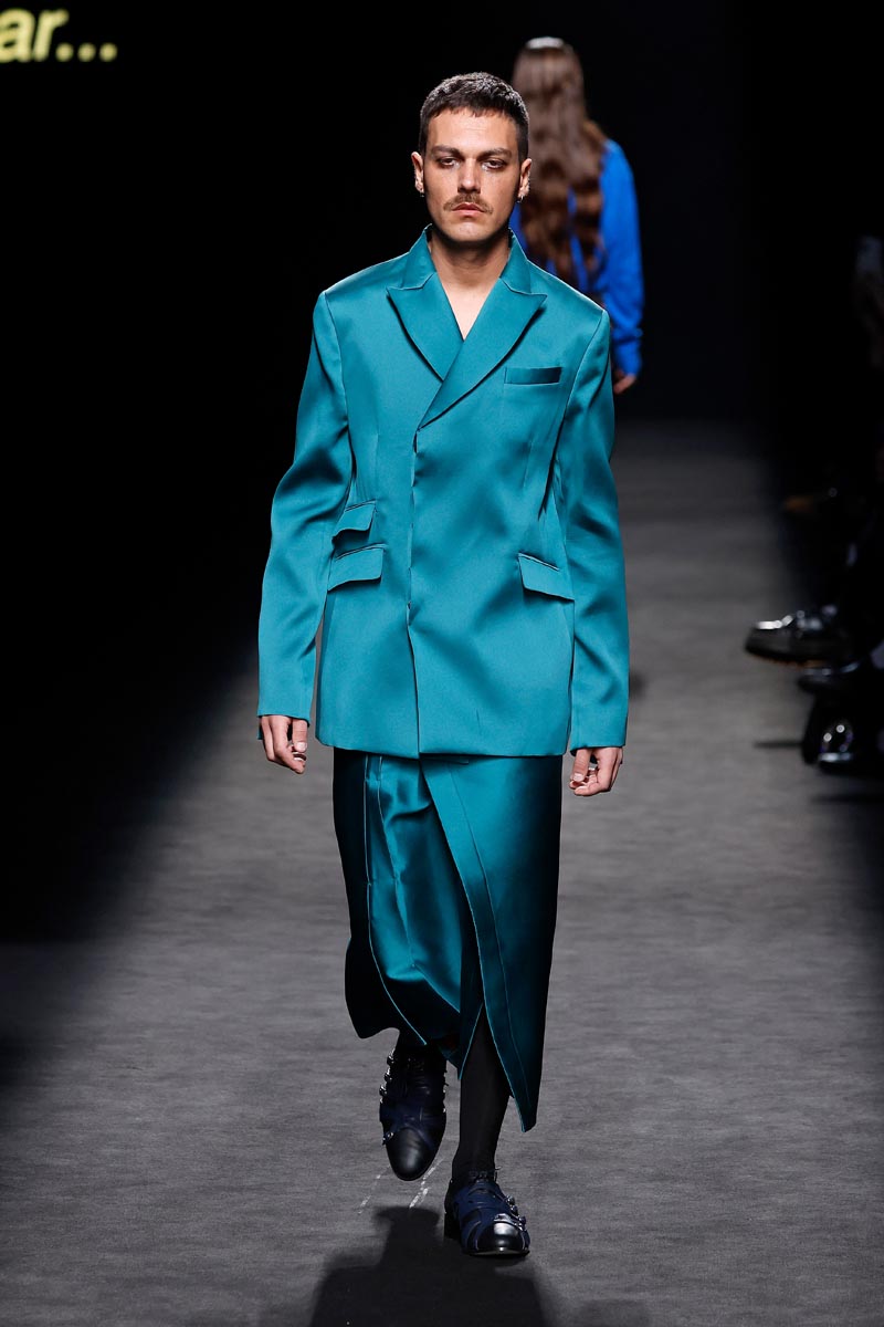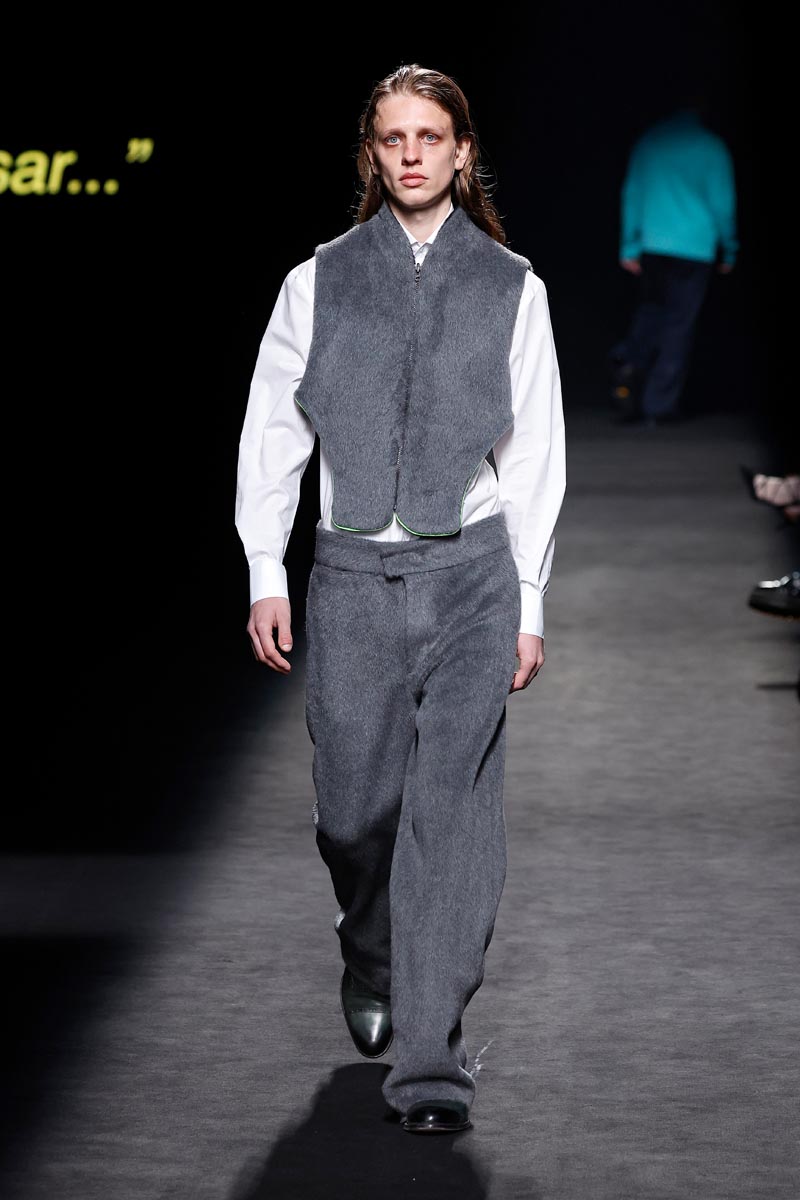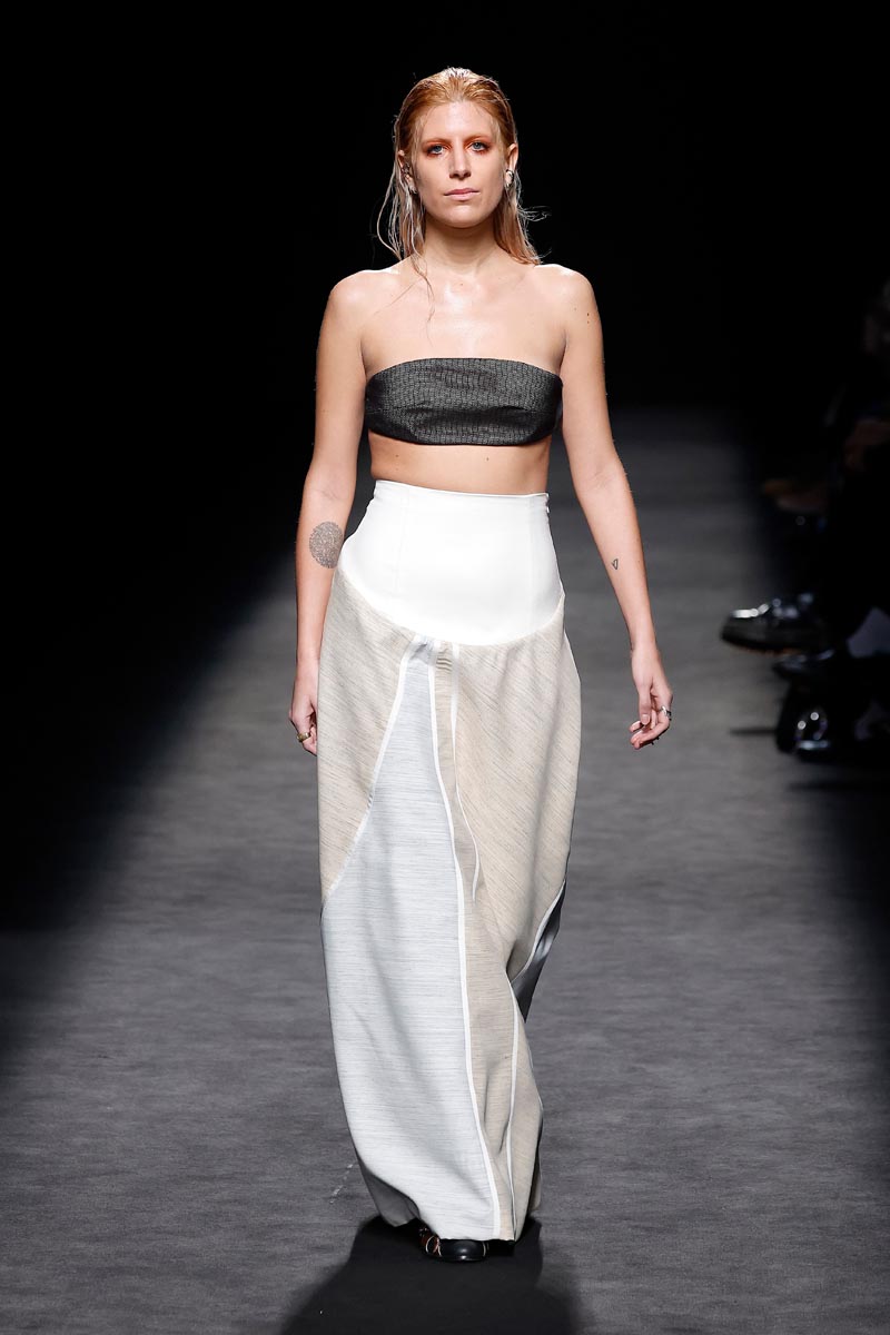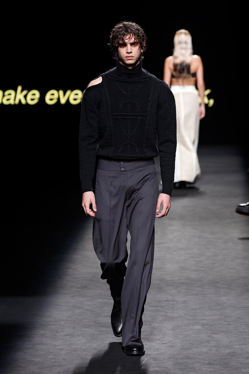 The collection is made up of hybrid elements: cottons, garments that are made from other different ones, patterns that configure new silhouettes and different textured blends such as denim and alpaca or cold wool and mohair. Works of corsetry reconstructed, decontextualized in gender and use, twisted garments, as if fighting within themselves and around the bodies, which in turn shelter and wrap them.