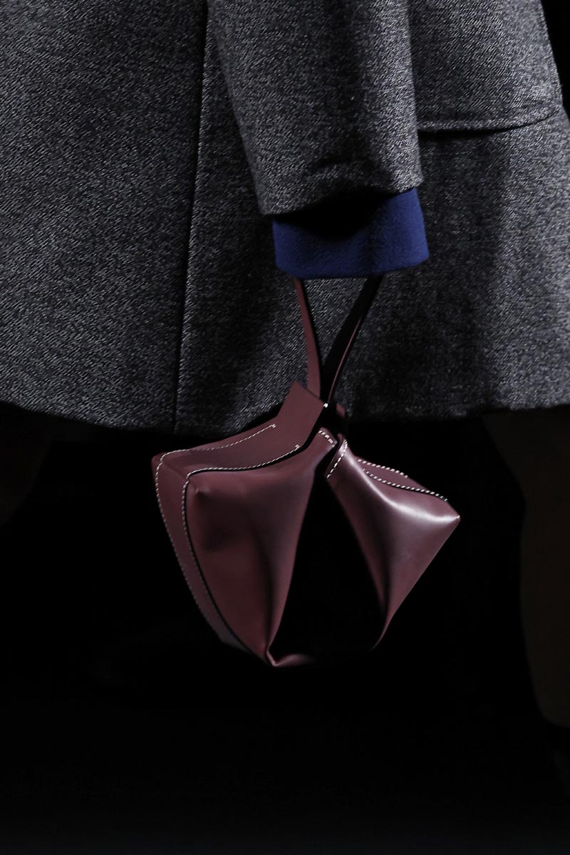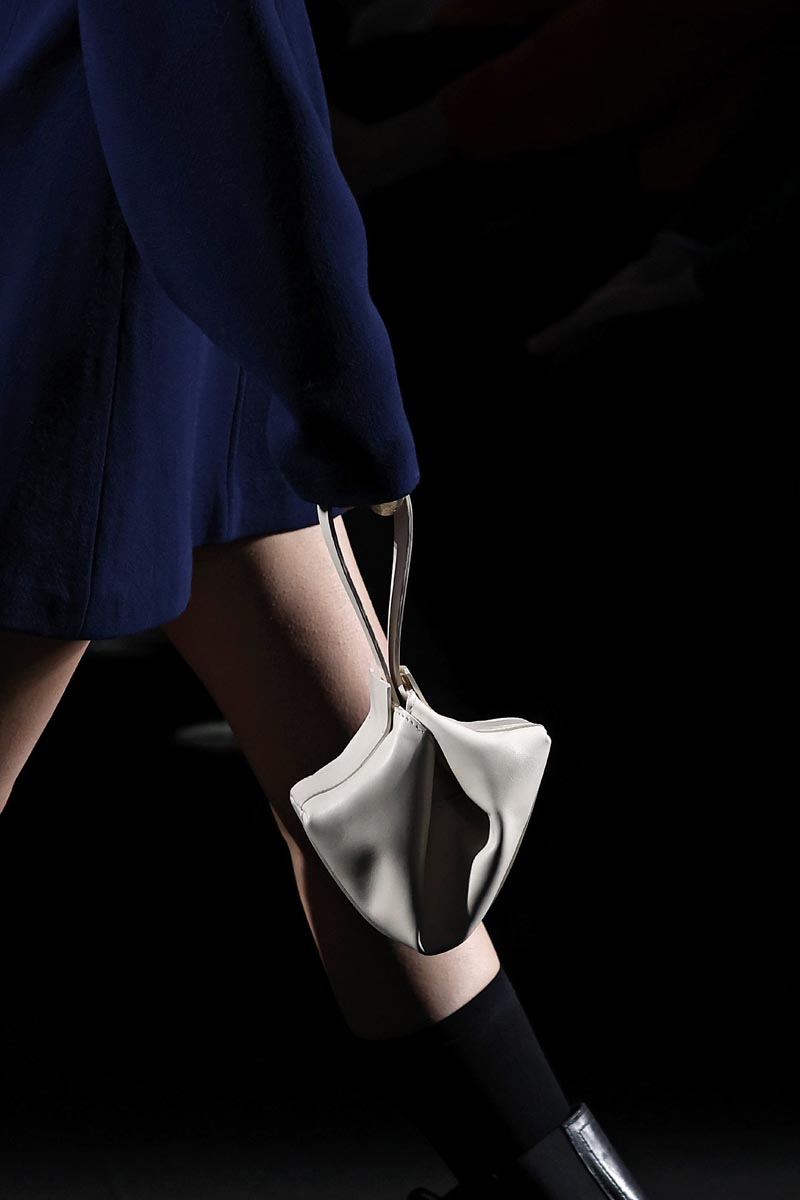 Finally, the accessories complement each outfit: geometric design bags in the shape of a cube and among the footwear, sling-back shoes with a kitty heel stand out.
