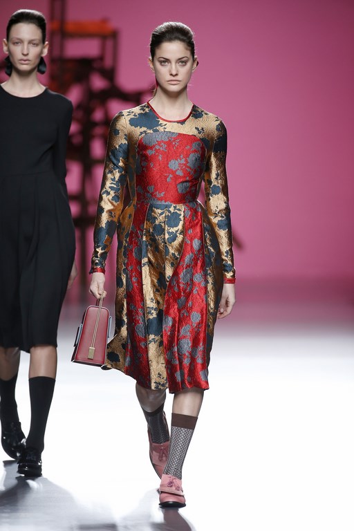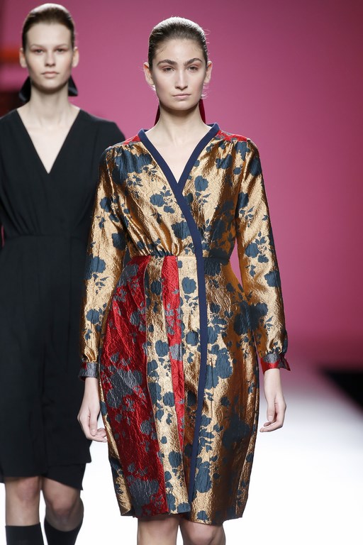 Juana Martín’s winter presentation was replete with polka dots and sprinkled with prints that recreate the flight of birds. Embroidered textiles and metal inlays give a sophisticated edge to items with a masculine cut. Wool and silk are the main fabrics of a proposal in which the designer from Córdoba once again showcases her origins, reinterpreting flounces and torero shapes anew. Juana Martín renews her very personal style on the runway each season.