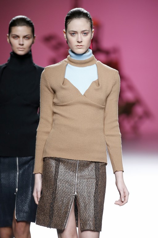 Moisés Nieto was responsible for opening the second day of fashion shows at MBFWM. Duality underscored the collection by the Andalusian designer for the coming season and takes us to the depth of Spain at the rhythm of horns and drums. Grief and joy, brightness and darkness, light and shadow guide a proposal in which colour gains vital importance. Straight lines and simple silhouettes are key in the garments by Moisés Nieto, who focuses on classic fabrics like wool, organza and Jacquard, providing the point of innovation in his finishing touches.