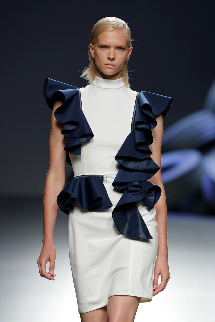 Maria Ke Fisherman bursts powerfully onto the official schedule of Mercedes Benz Fashion Week Madrid. Maxi logos that roam their garments, dresses and bandeau skirts and sporty inspiration brand a proposal of futuristic airs. The winners of Who’s on Next 2014 present on the catwalk crochet garments handmade in an artisan manner in a convent of cloistered nuns. A magnificent union of tradition and innovation that puts the finishing touch to the third day of fashion shows in MBFWM.
