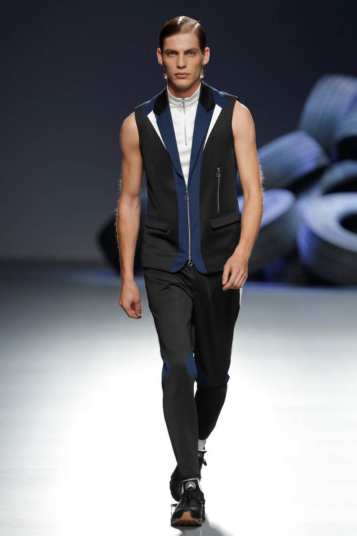 The pianist Juan Antonio Simarro has been in charge of providing the soundtrack to the gimmicky fashion show by Ion Fiz. The Basque designer presents a collection of lingerie styles with delicate silks and lace and feathers finishings, in an ode to transparency. Mild garments that contrast with angular pieces made in technological materials and mesh. Le Presage departs from classic lines that are deconstructed to make way for avant-garde and innovative creations.