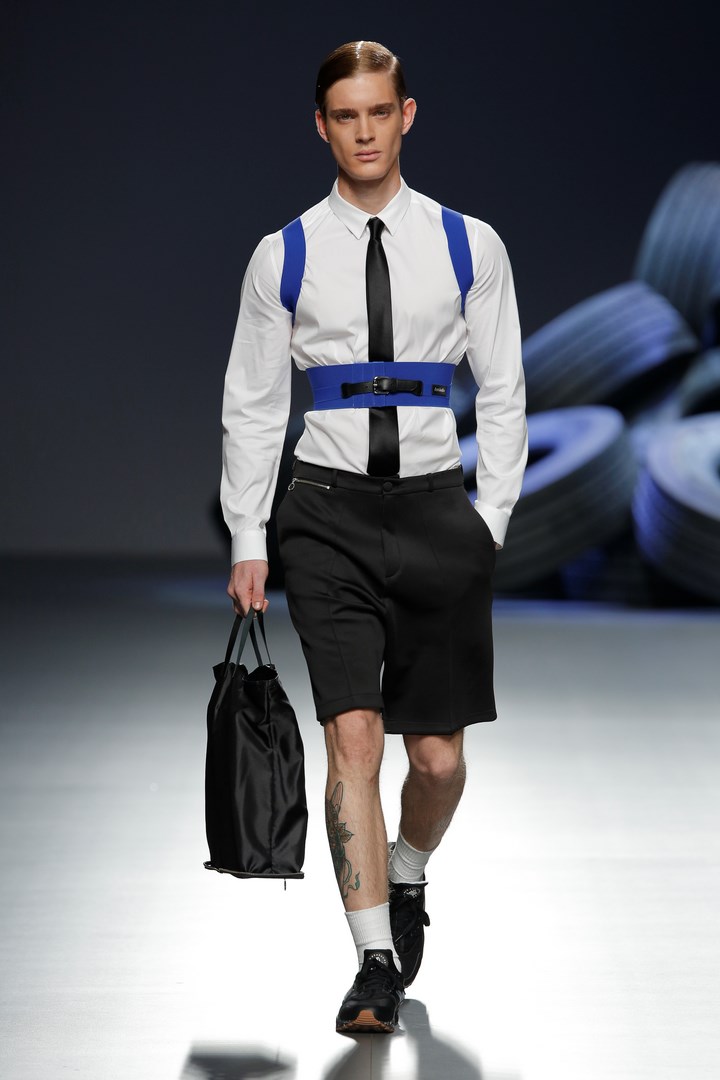 Etxeberria explores with his collection “In plain air” the capabilities of a very summery fabric such as seersucker, material with which he has fully developed his collection. The Basque designer revisits again the classic English tailoring to create completely renovated garments. Outstanding are the accessories and the ceramic details that decorate his proposals, created in collaboration with Carmen Balada.