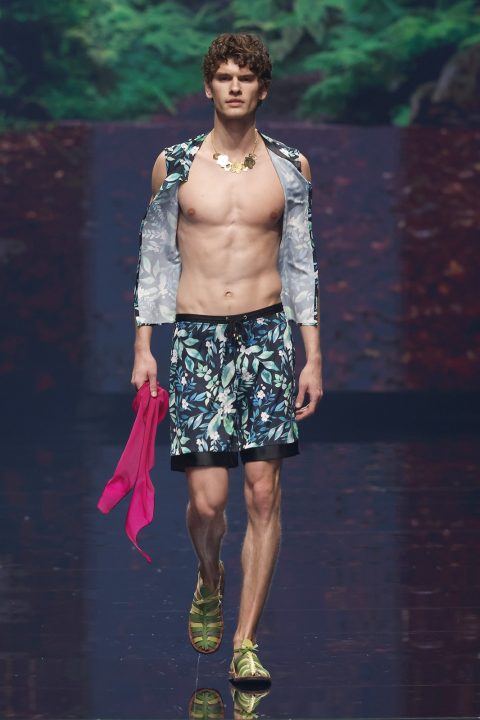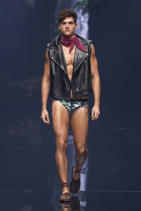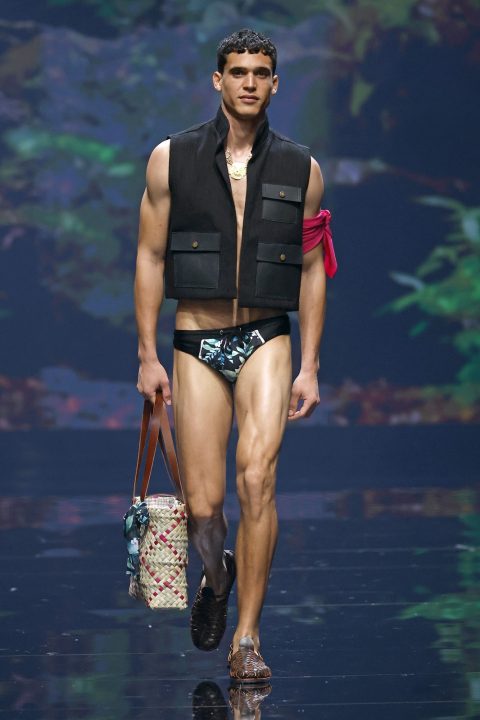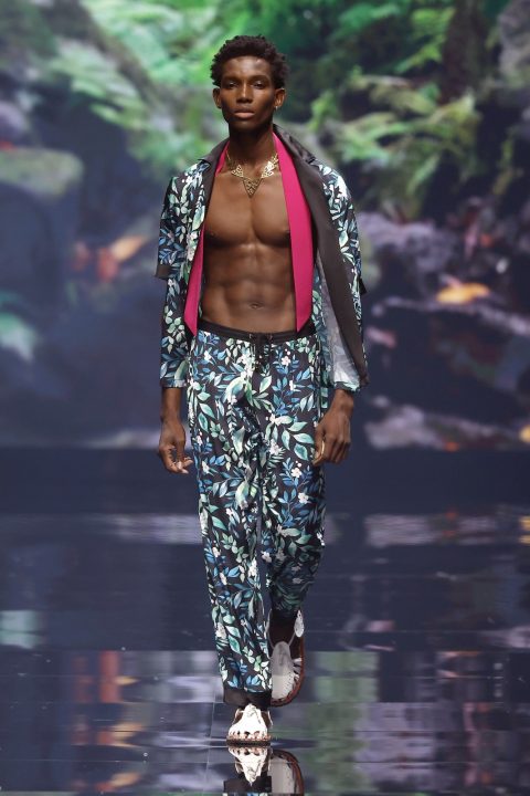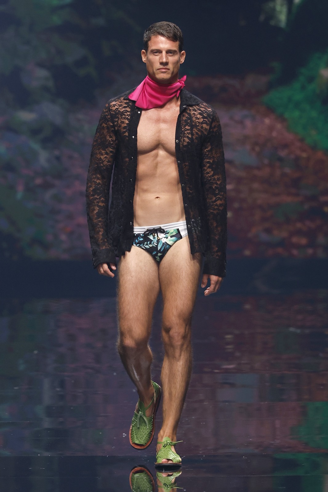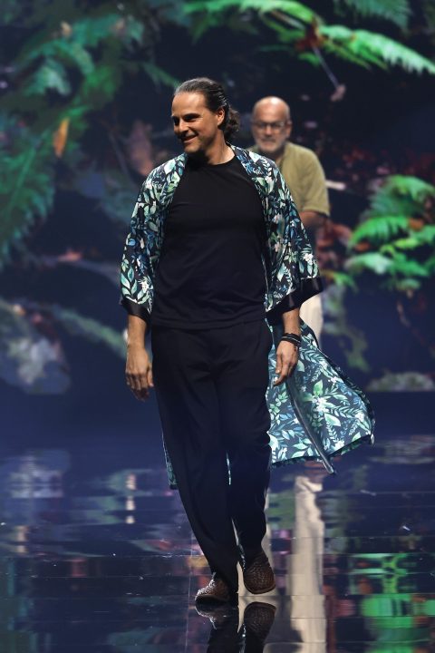 Los colores beben de la densidad del monteverde: negros lava, verdes minerales, marrones corteza, blancos flor y destellos dorados que se abren paso entre la penumbra, con un fucsia autóctono como irrupción vital. Los materiales —cuero reciclado, tejidos ecológicos y lycras sostenibles— aportan textura y coherencia ética. La colección se completa con joyas y complementos de autor de artesanos palmeros, piezas escultóricas que refuerzan el diálogo entre tradición y vanguardia.