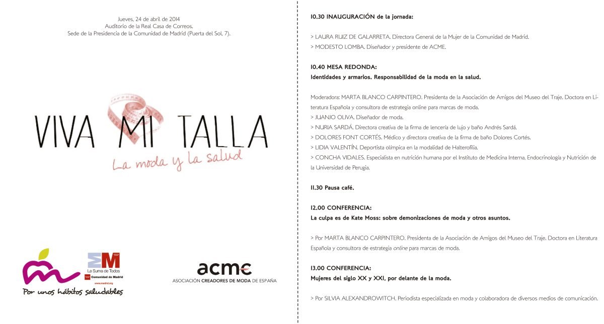 La Asociación Creadores de Moda de España y la Comunidad de Madrid, a través de la Consejería de Asuntos Sociales y la Dirección General de la Mujer, han organizado la jornada “Viva mi Talla. La Moda y la Salud”, que se ha celebrado hoy en la sede de la presidencia de la Comunidad de Madrid. […]
