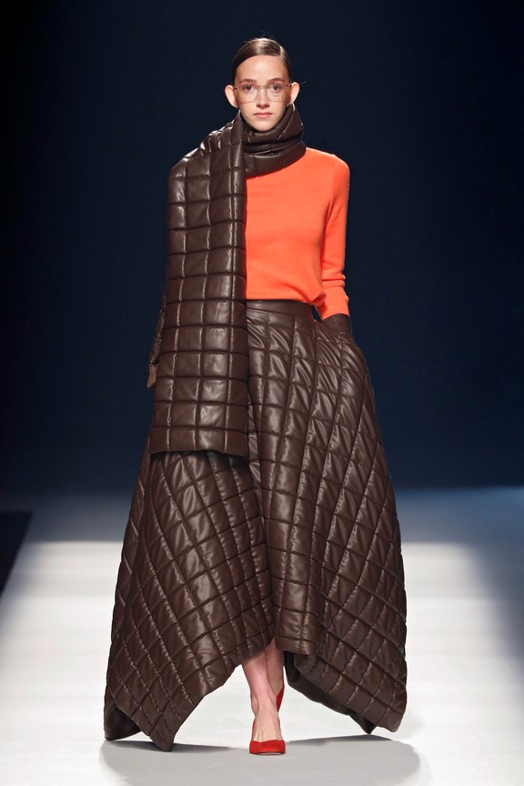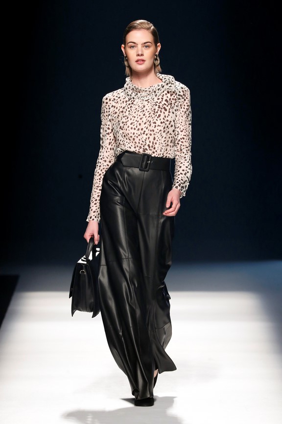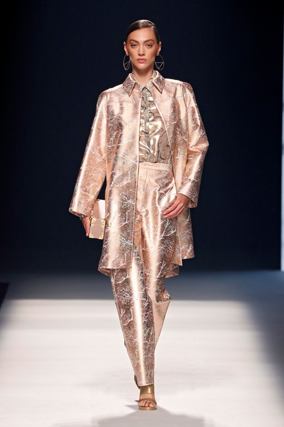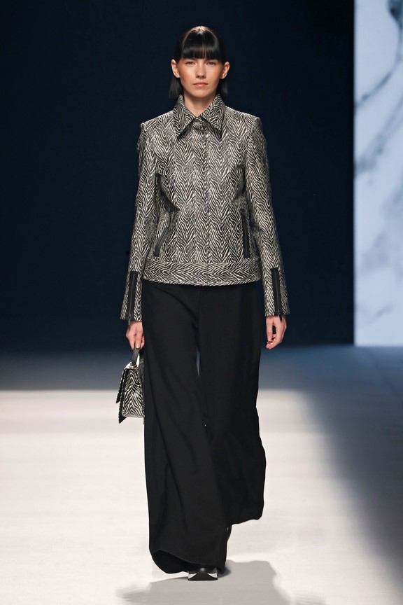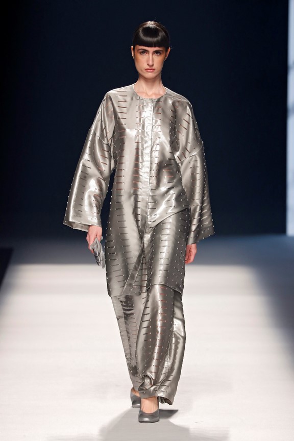 Mies Van der Rohe y la Bauhaus inspiran al diseñador para crear una colección basada en las líneas de la arquitectura de principios del XX. Materiales como el mármol se transforman en moda a través de tejidos y estampados que se erigen en los grandes protagonistas sus propuestas. Brillos metalizados y colores vibrantes conviven con cálidas prendas en cámel y marrón que ensalzan la funcionalidad y la elegancia, señas de identidad de la emblemática casa Schlesser.