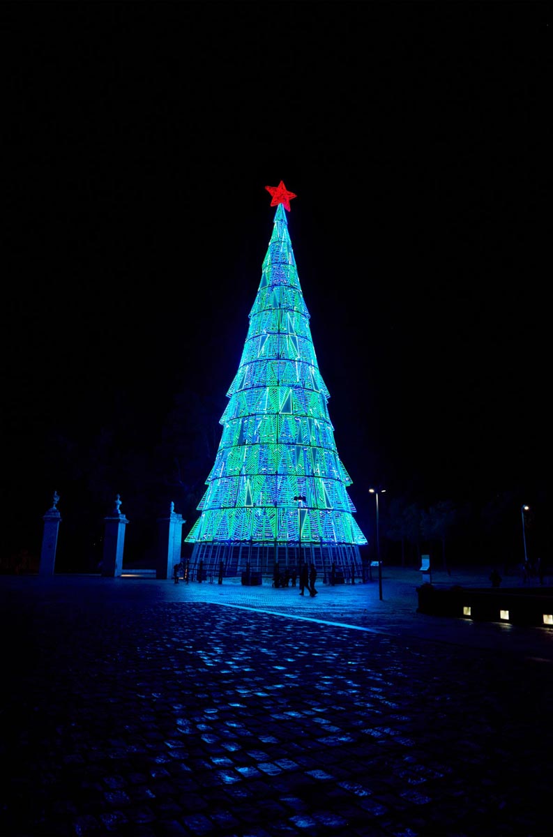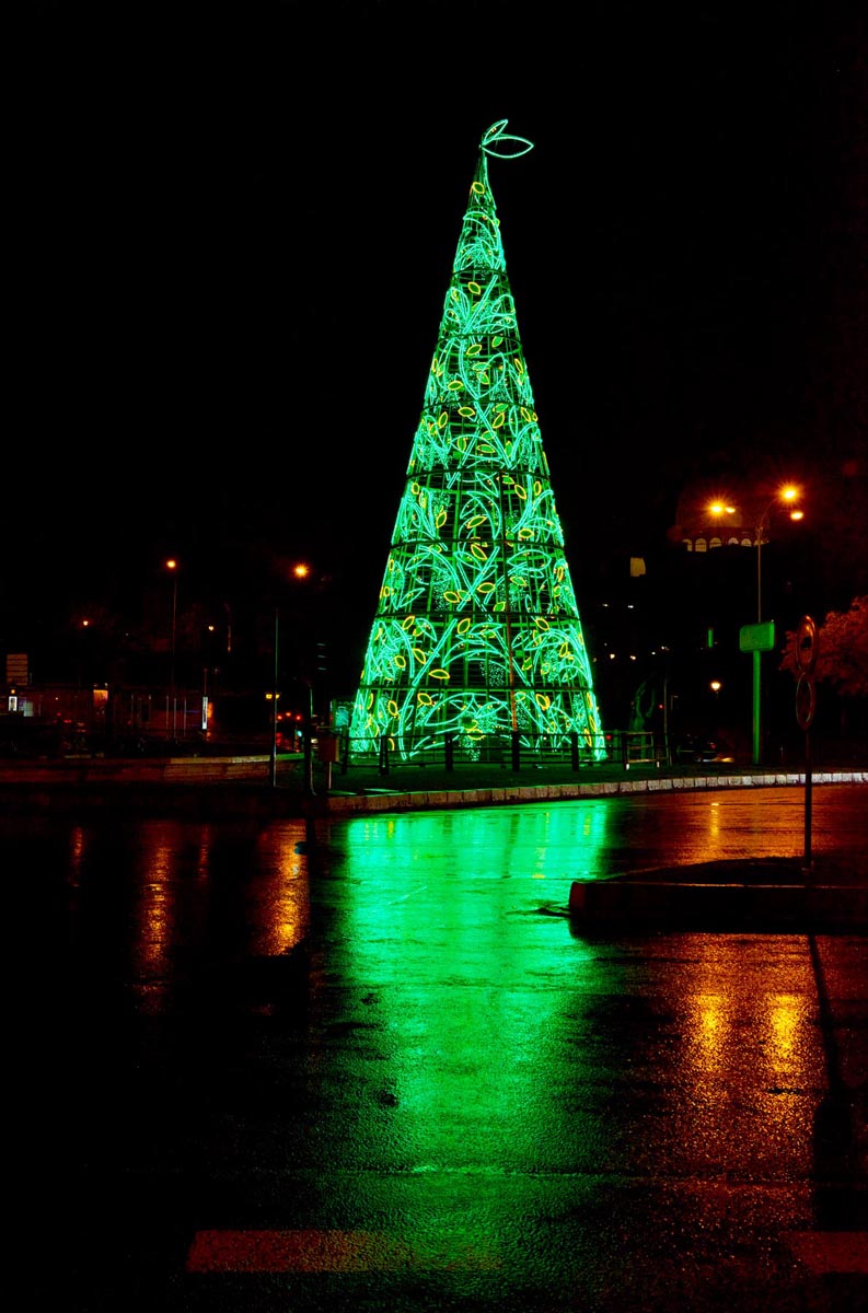 Y la diseñadora de joyas Helena Rohner define así el abeto luminoso moldeado para la plaza de San Juan de la Cruz: “Pensaba en un árbol como símbolo universal, sin mensaje más allá de la naturaleza y su armonía implícita. Se ha diseñado con el firme objetivo de ser una presencia alentadora: tanto de noche un árbol encendido como de día sin encender”.