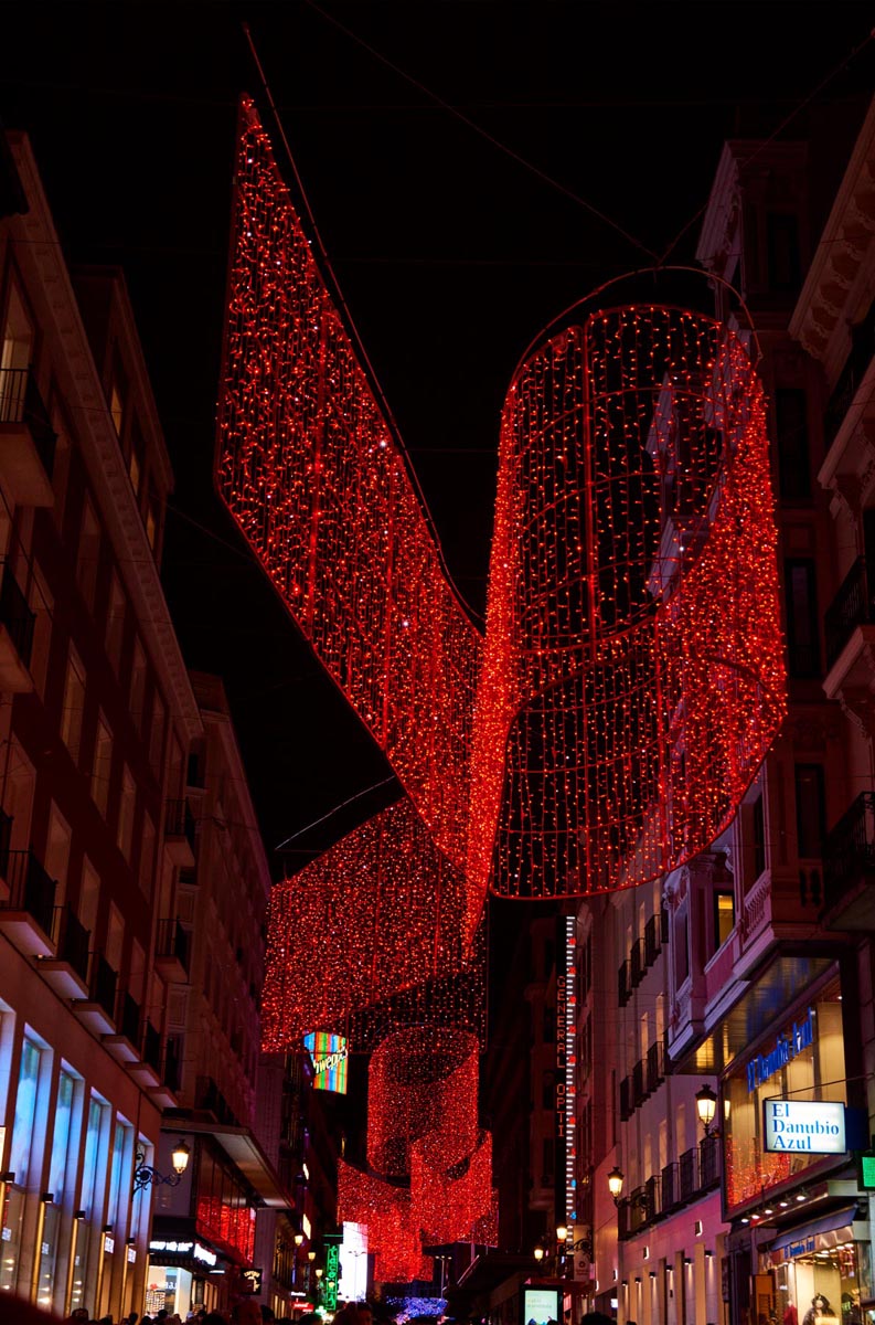 Las propuestas del resto de creadores, estrenadas en años anteriores, se mantendrán en las ubicaciones habituales. El romántico diseño de Juan Vidal, donde el color rojo y un gran corazón son los principales elementos, iluminará la calle Preciados, y el de Maya Hansen tomará la calle Montera, inspirado en el mundo del patinaje y en la obra del grafitero Muelle, muy vinculado a este lugar. Vuelve también a la calle Fuencarral el universo creativo de Teresa Helbig y a la calle Goya la colorida guirnalda de Duyos, que recuerda las líneas de la joyería clásica y la fuerza que transmiten las piedras preciosas. Además, en el paseo del Prado será una vez más parada obligada la menina de 10 metros de altura y 37.720 bombillas led, diamantes de plástico, lentejuelas y bolas de color plata diseñada por Andrés Sardá en colaboración con el proyecto Meninas Madrid Gallery del artista Azzato y Madrid Capital de Moda.