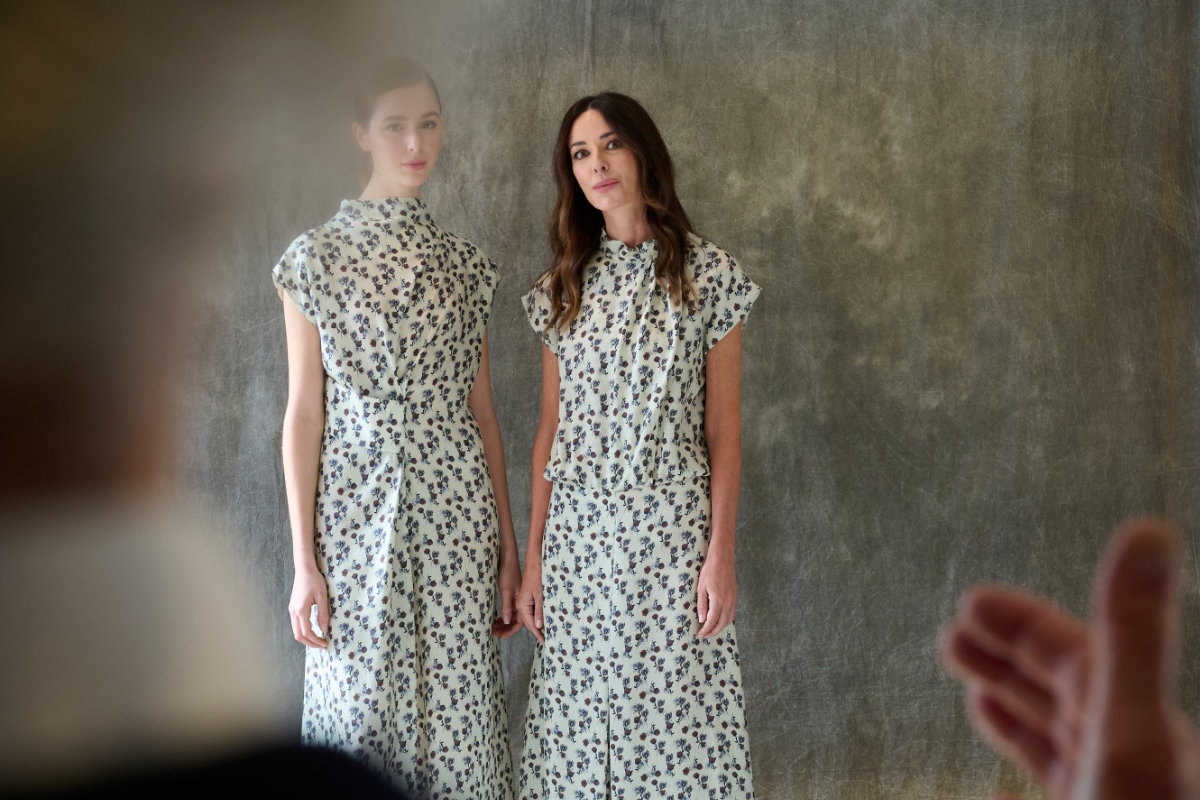 Una propuesta para el próximo otoño/invierno en la que se dibujan detalles refinados y estudiadas superposiciones en looks de tres prendas que se alternan entre vestidos midi, drapeados con cortes asimétricos y mangas singulares y otros más cortos, de escotes redondeados y pinzas al aire. La sastrería, arraigada en la marca, diseña chaquetas, pantalones y abrigos de líneas marcadas a tramos discontinuos, cortes limpios y cinturillas trabajadas.