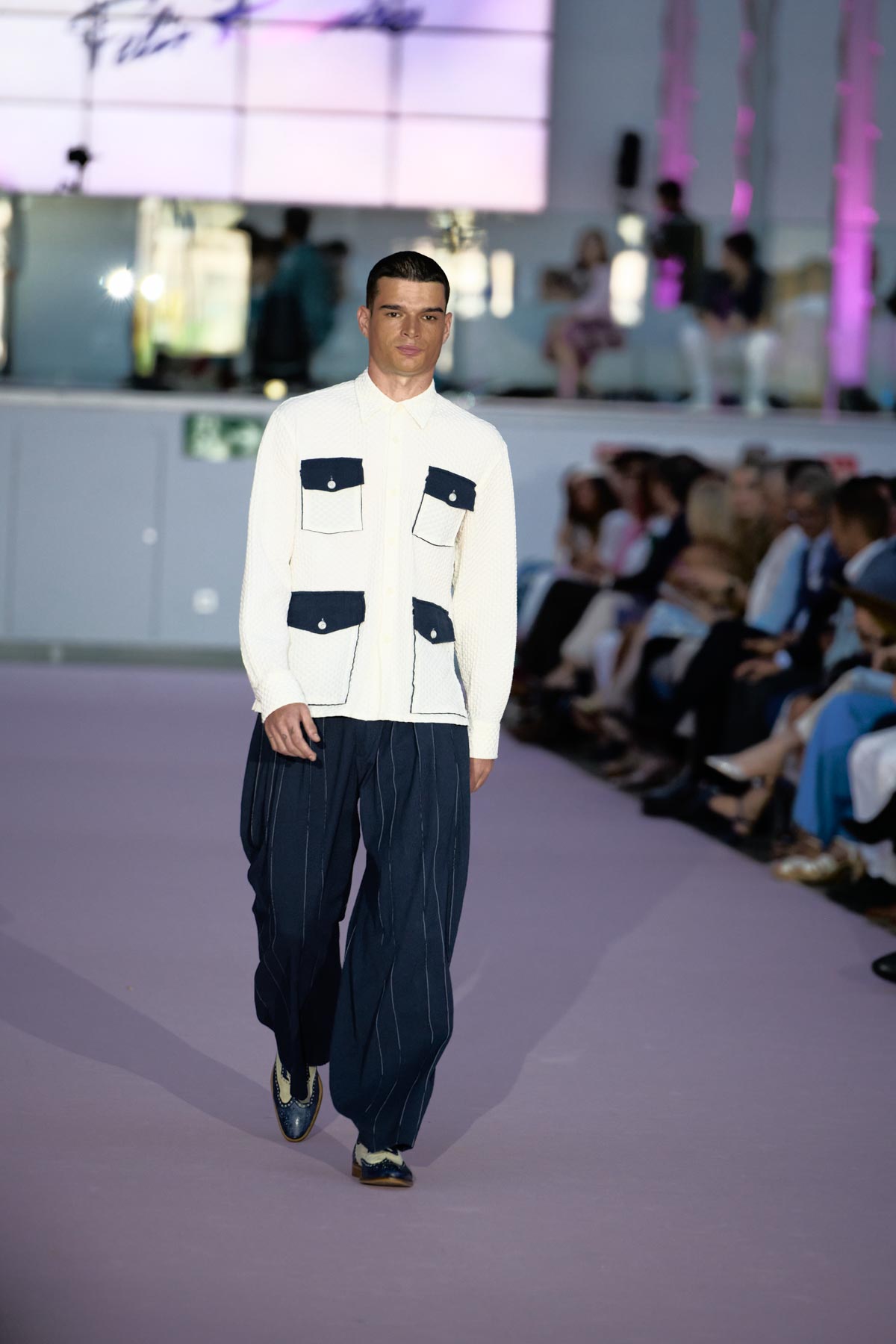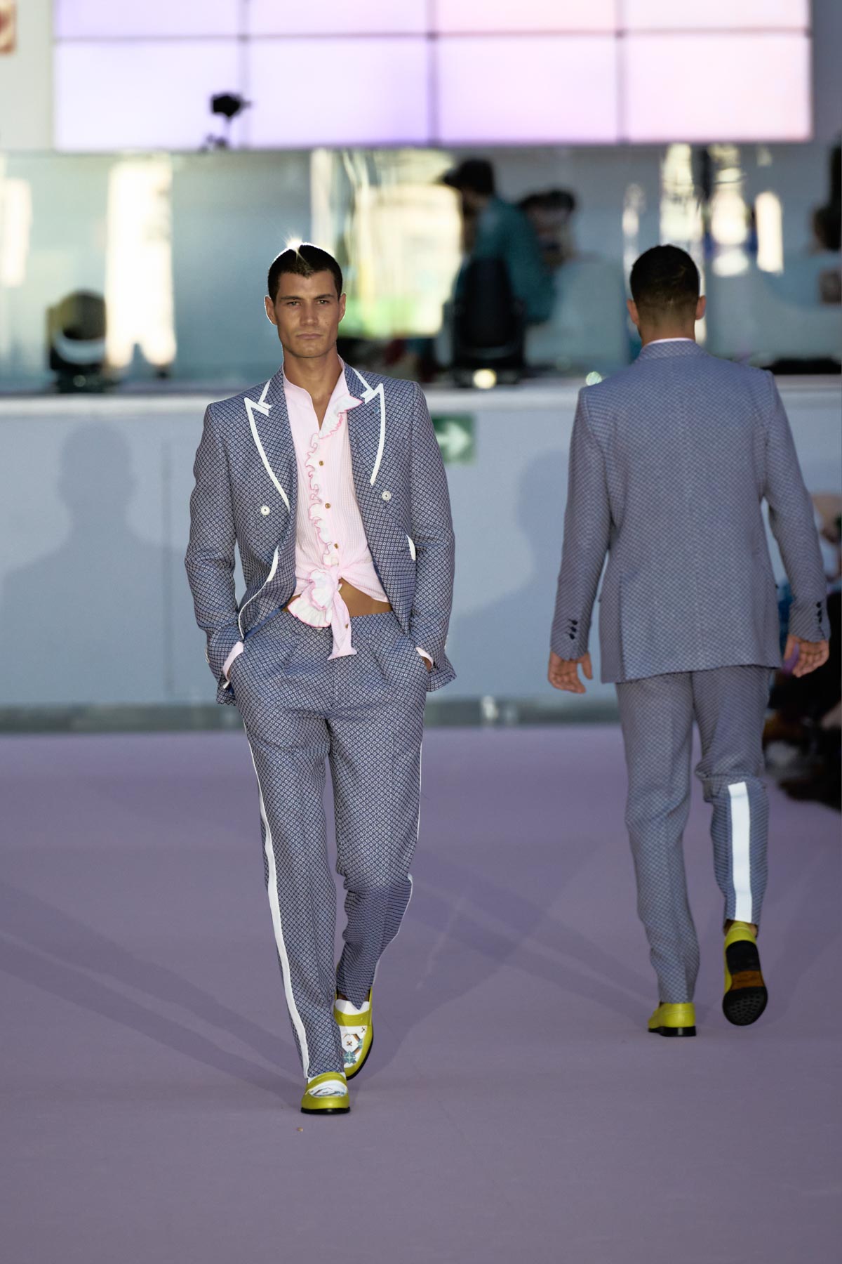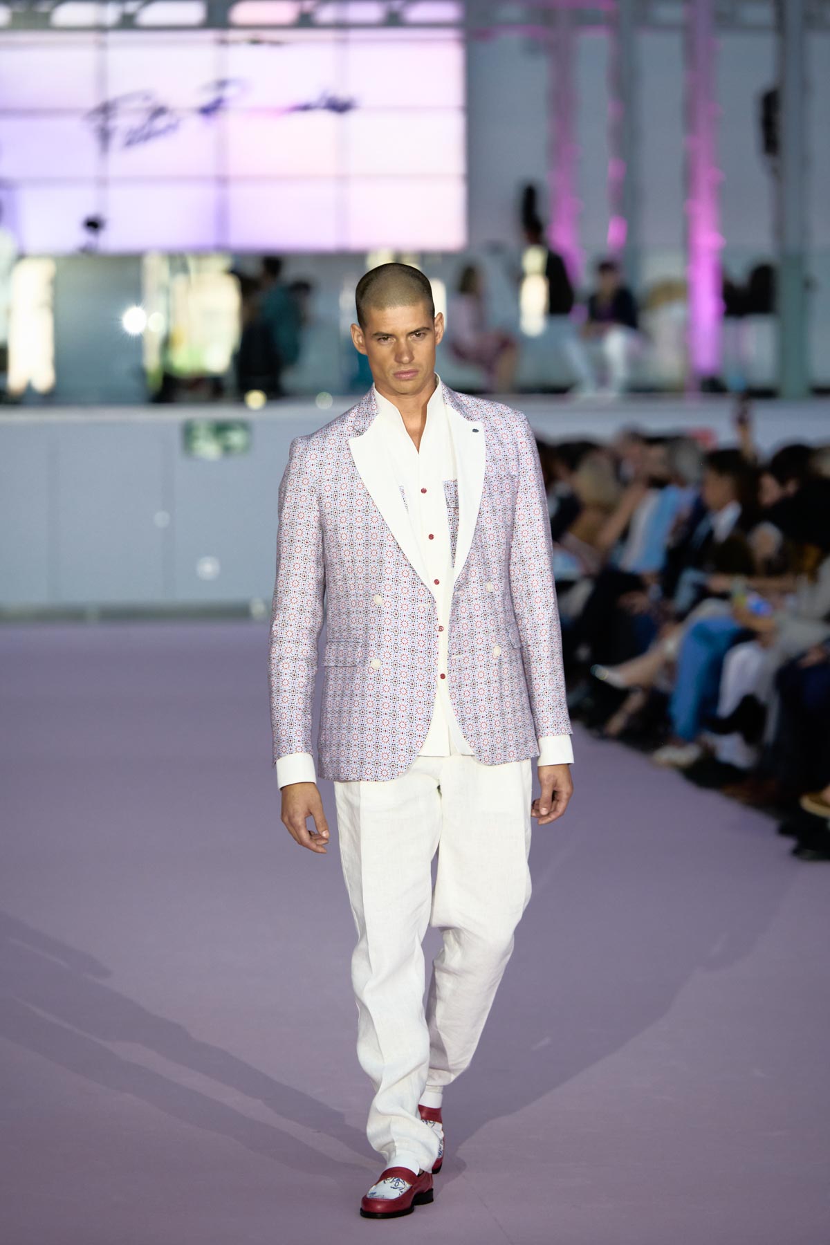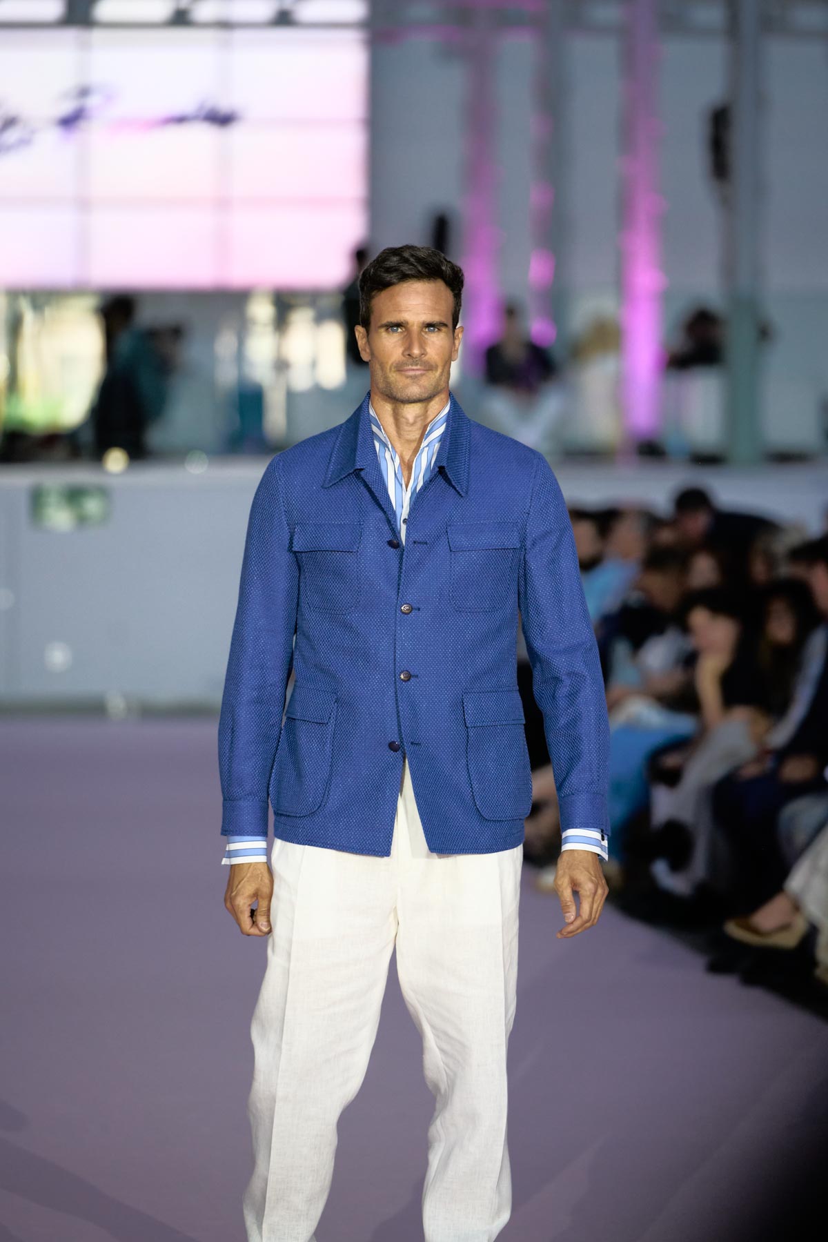 En las siluetas conviven sobrecamisas estructuradas, bombers, pantalones de trazo firme y americanas que renuevan la tradición sartorial. Los tejidos —del lino a la seda, del algodón orgánico a la viscosa— sostienen efectos arquitectónicos y detalles como carteras asimétricas, trabillas o delanteros de inspiración persiana. La paleta cromática amplifica el discurso con tonos de blanco cal, azul índigo, verde esperanza, carmesí, albero y morado, colores que hablan de memoria y emoción.