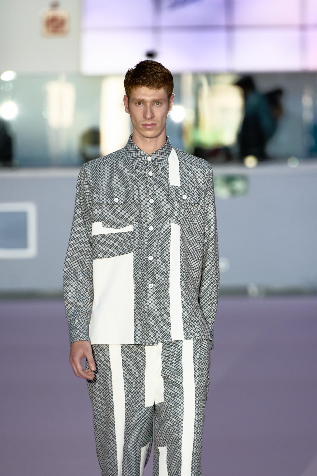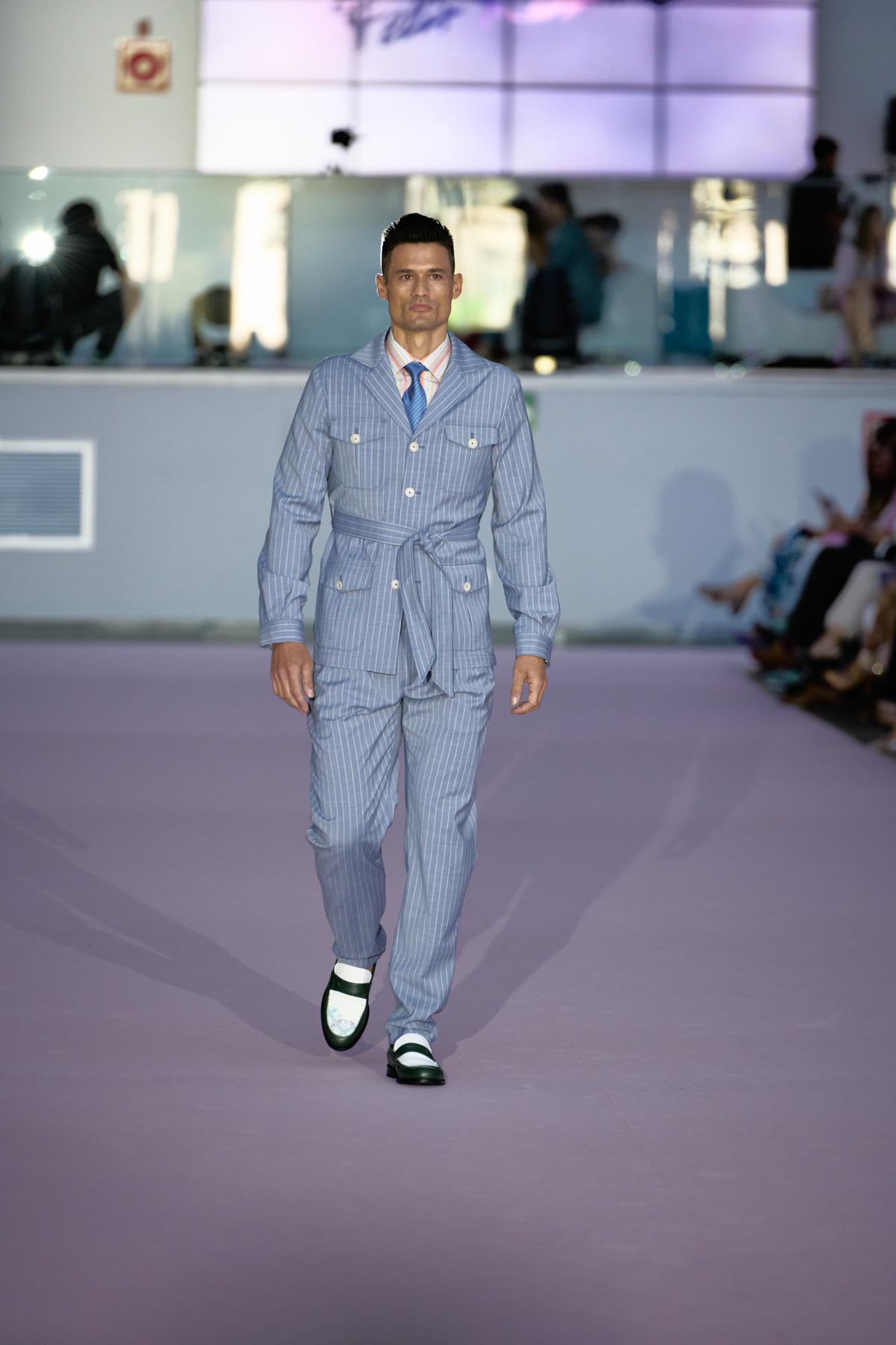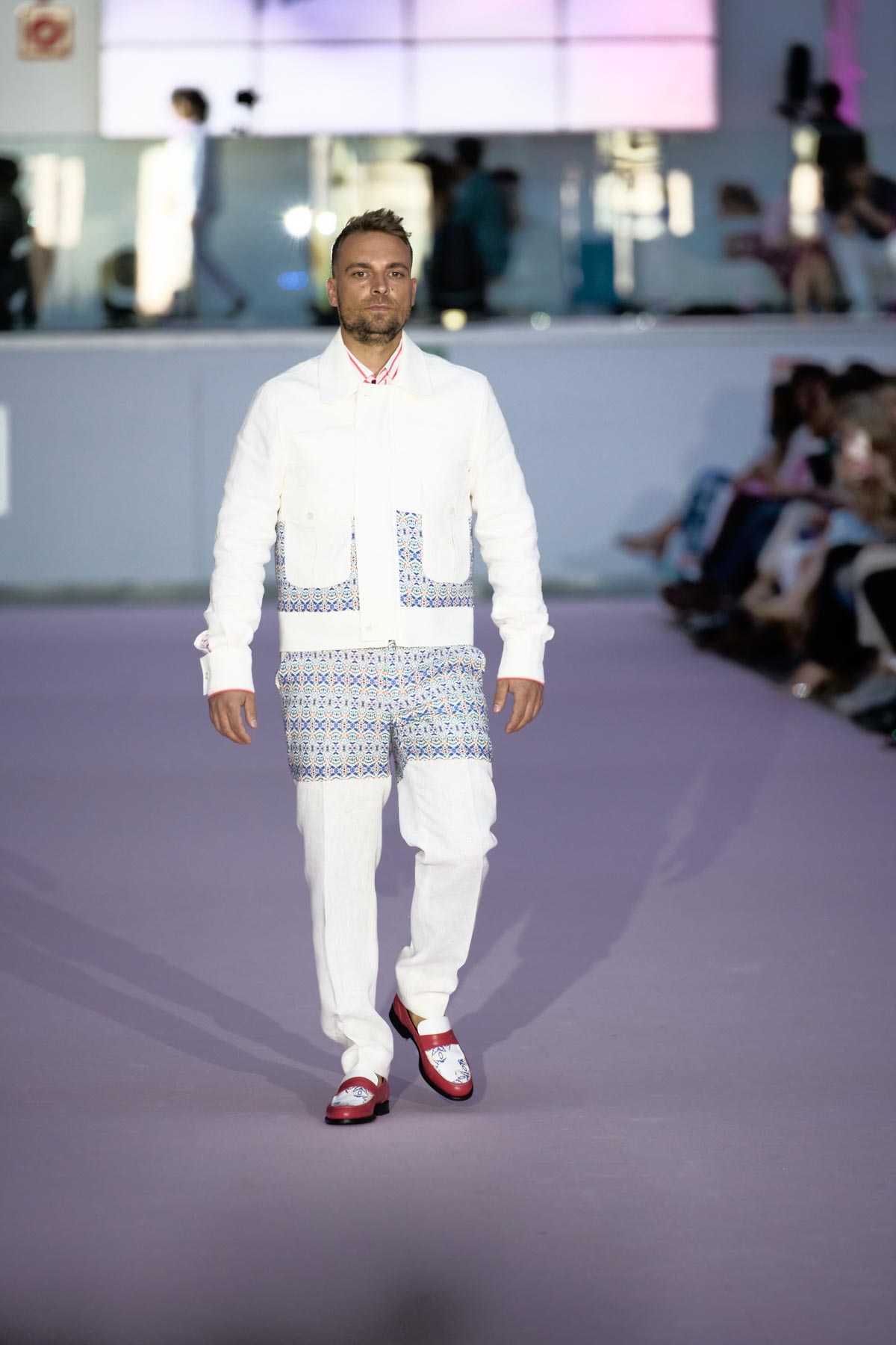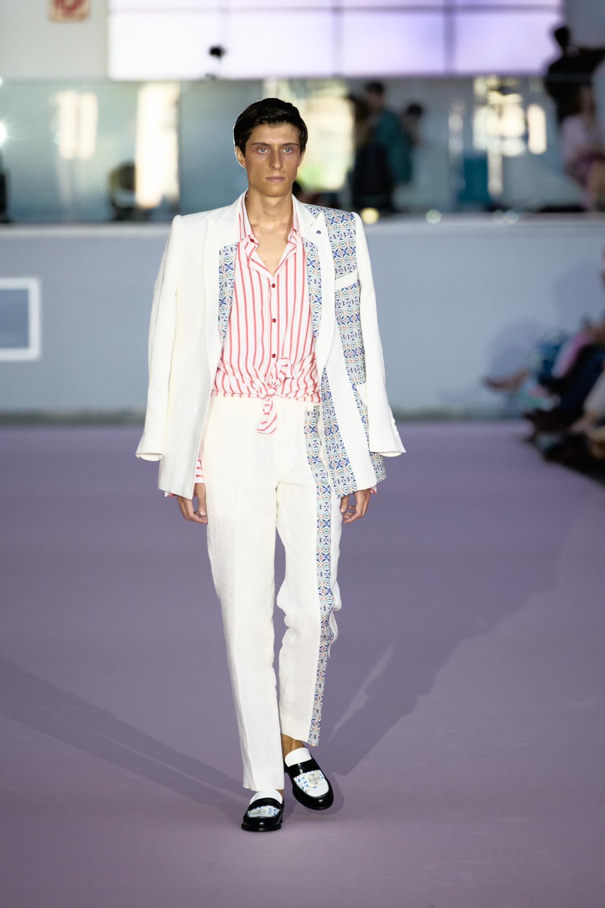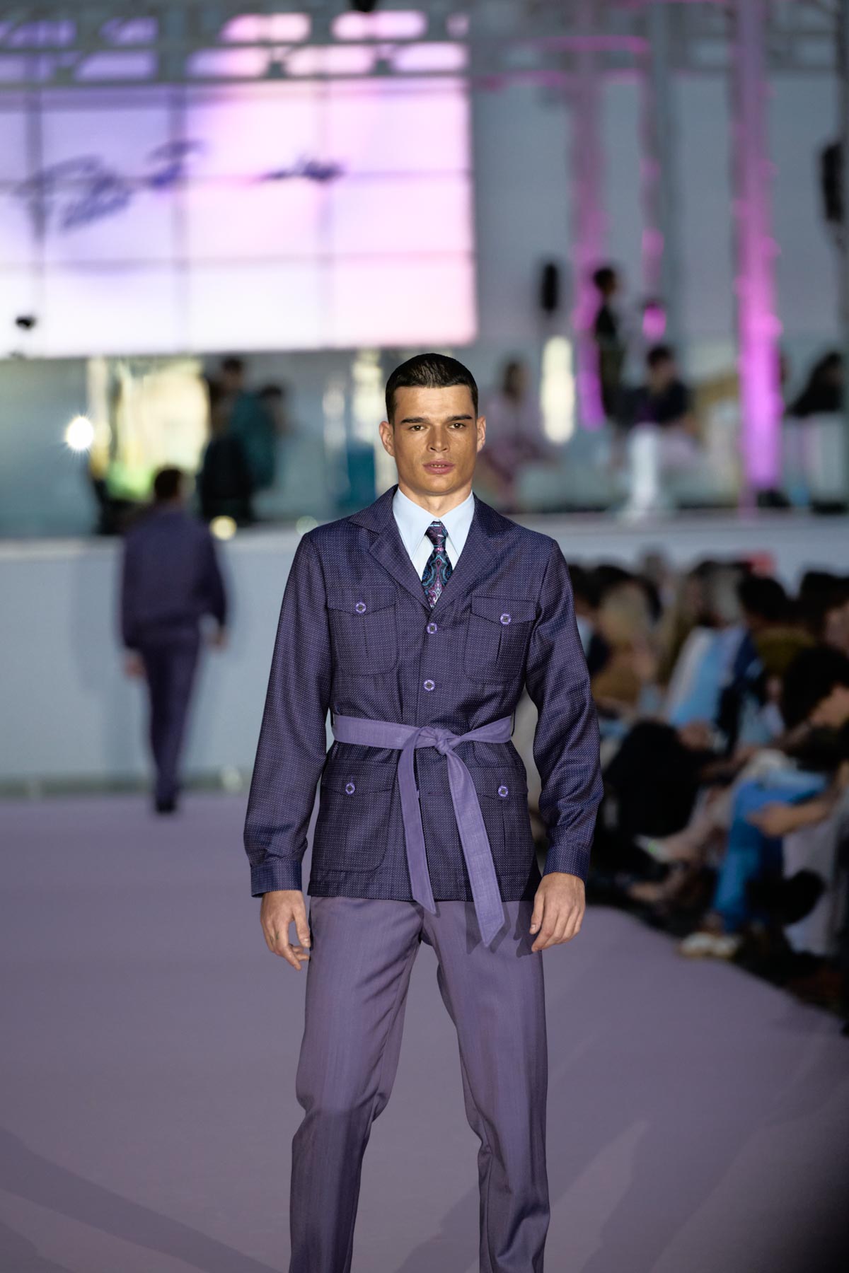 En las siluetas conviven sobrecamisas estructuradas, bombers, pantalones de trazo firme y americanas que renuevan la tradición sartorial. Los tejidos —del lino a la seda, del algodón orgánico a la viscosa— sostienen efectos arquitectónicos y detalles como carteras asimétricas, trabillas o delanteros de inspiración persiana. La paleta cromática amplifica el discurso con tonos de blanco cal, azul índigo, verde esperanza, carmesí, albero y morado, colores que hablan de memoria y emoción.