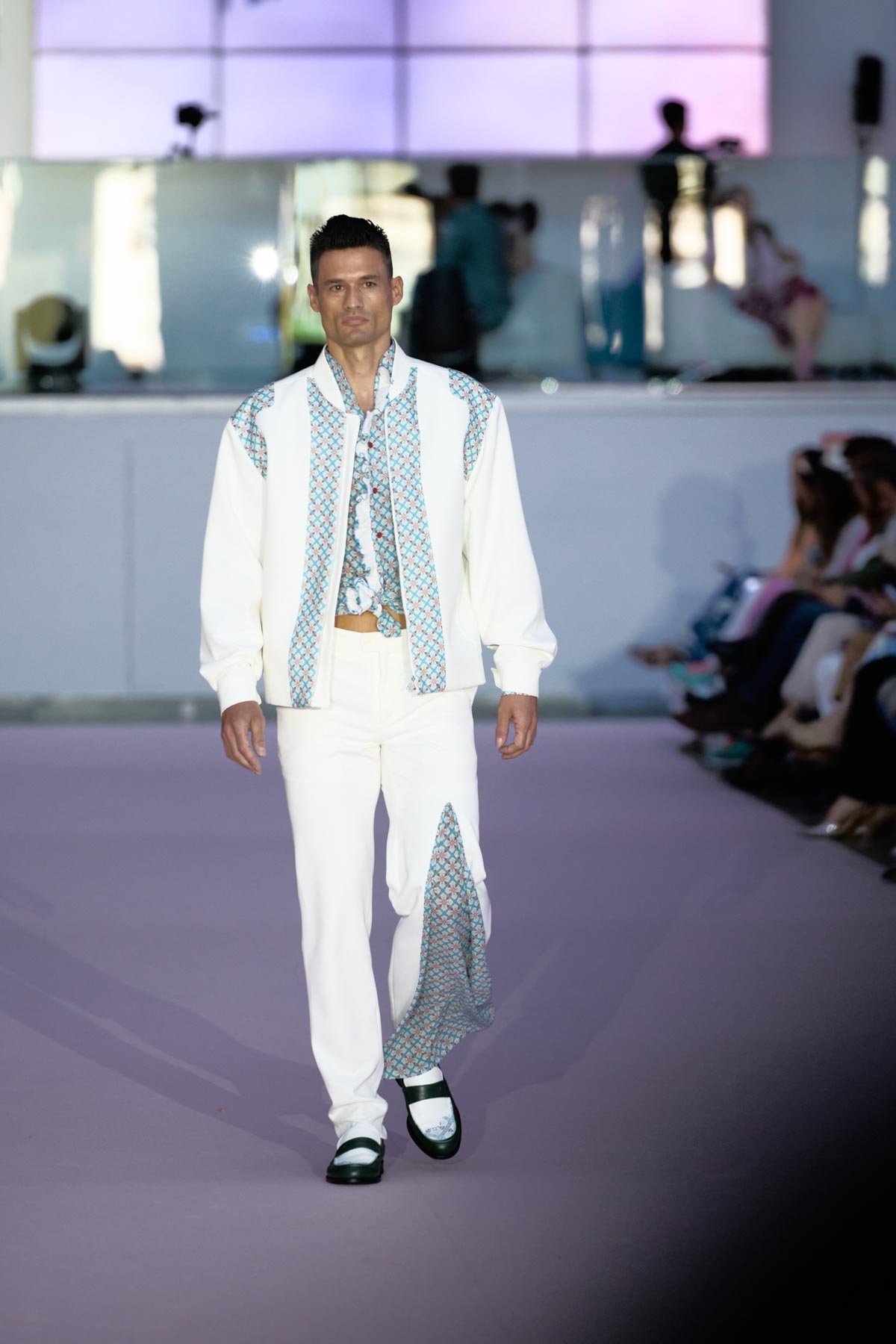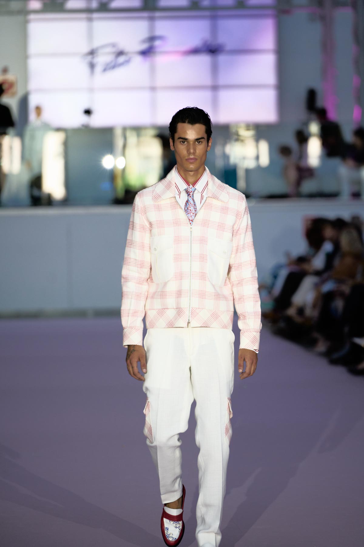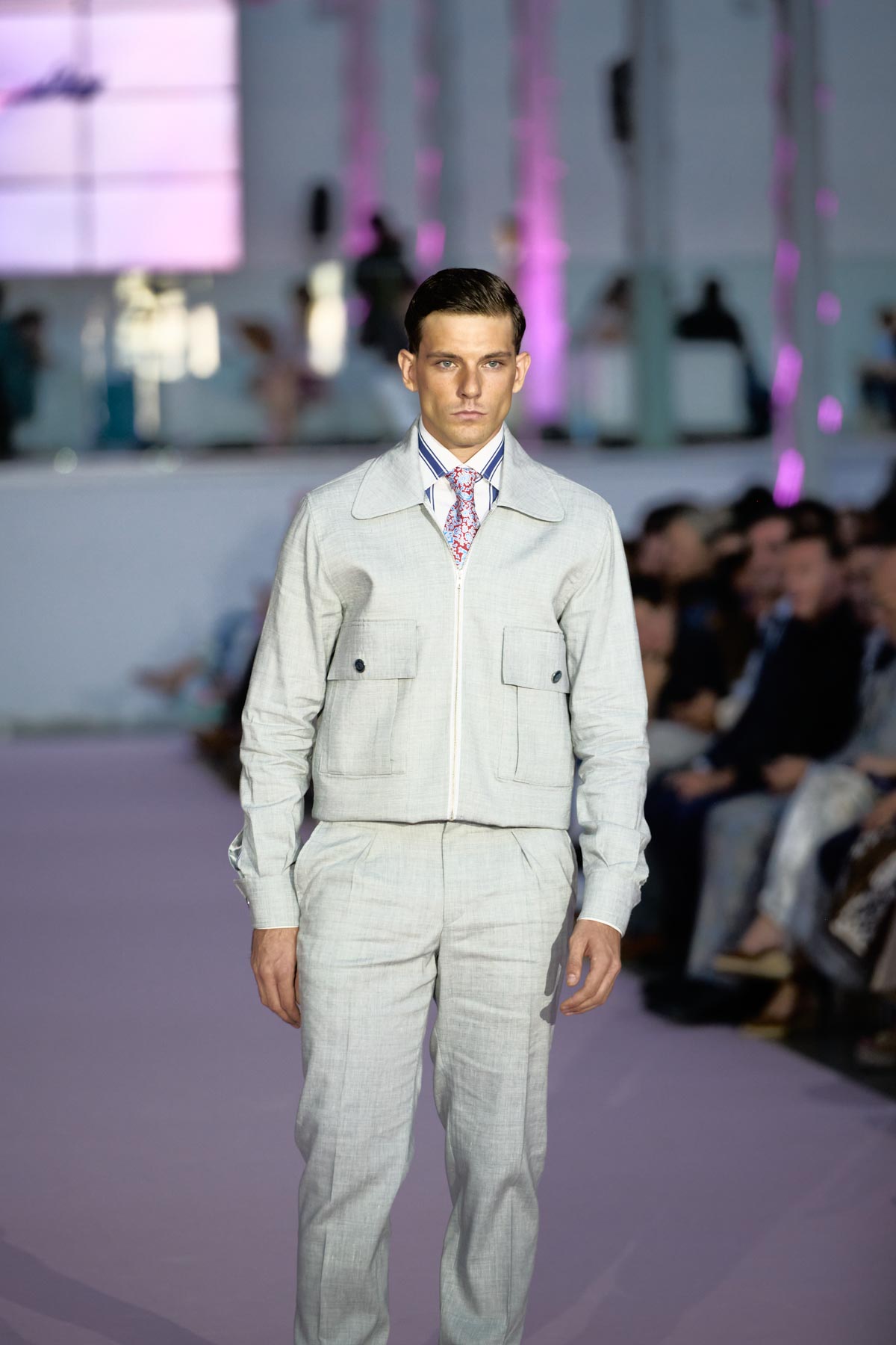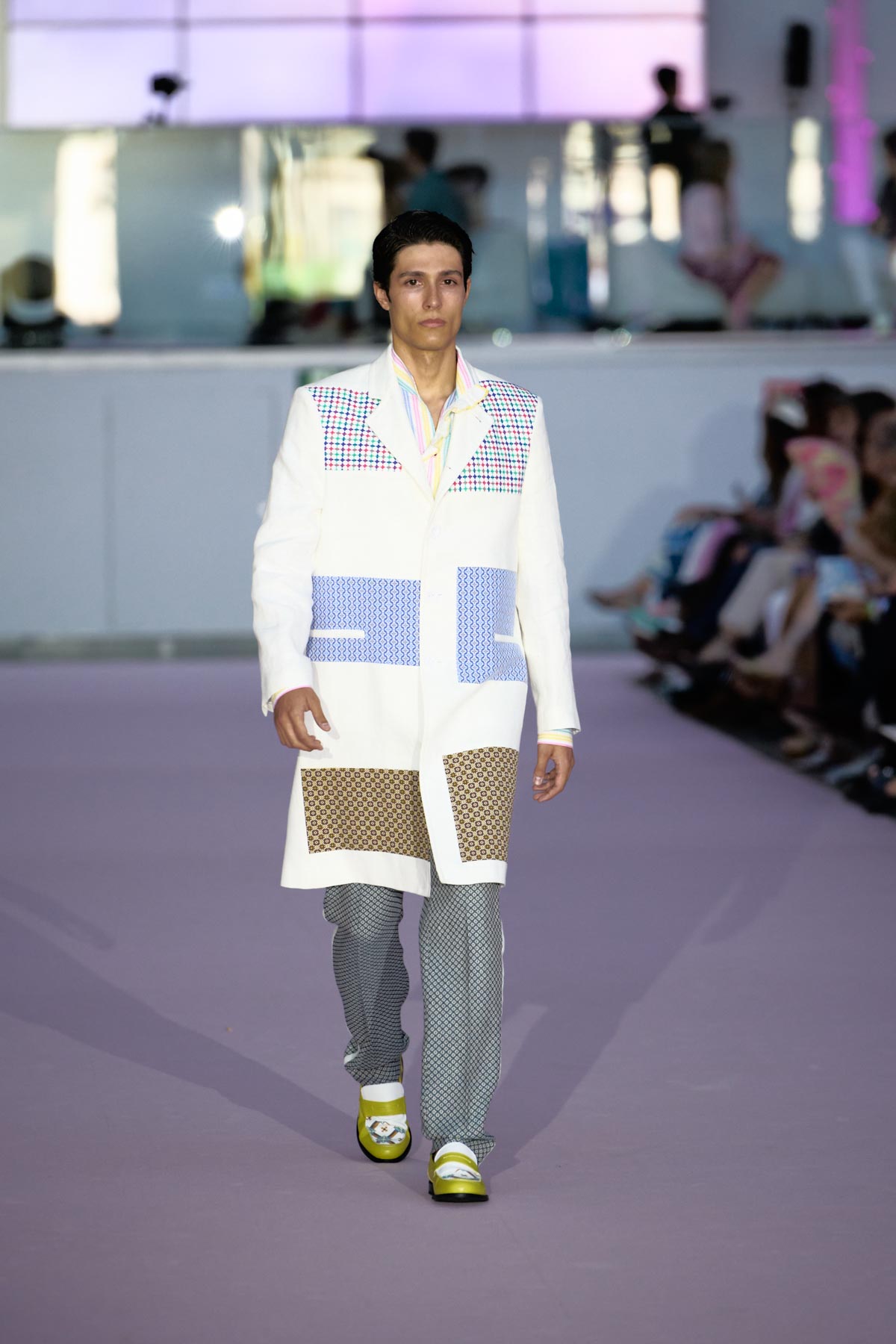 En las siluetas conviven sobrecamisas estructuradas, bombers, pantalones de trazo firme y americanas que renuevan la tradición sartorial. Los tejidos —del lino a la seda, del algodón orgánico a la viscosa— sostienen efectos arquitectónicos y detalles como carteras asimétricas, trabillas o delanteros de inspiración persiana. La paleta cromática amplifica el discurso con tonos de blanco cal, azul índigo, verde esperanza, carmesí, albero y morado, colores que hablan de memoria y emoción.