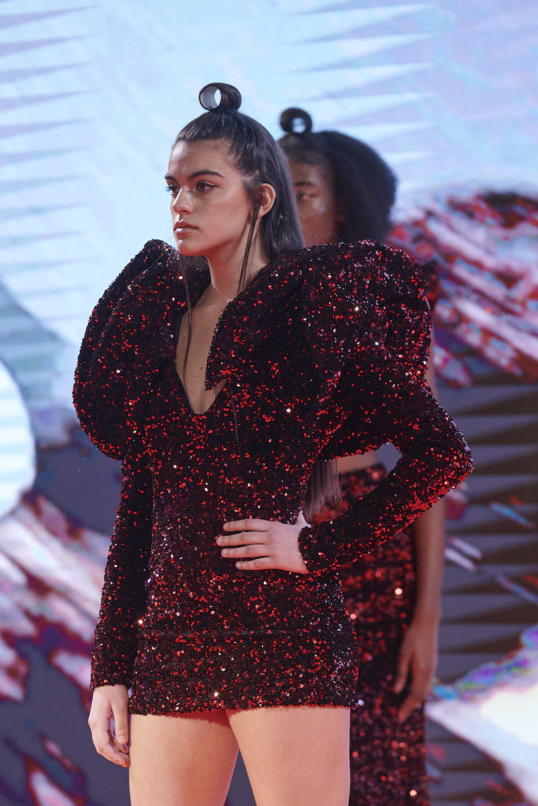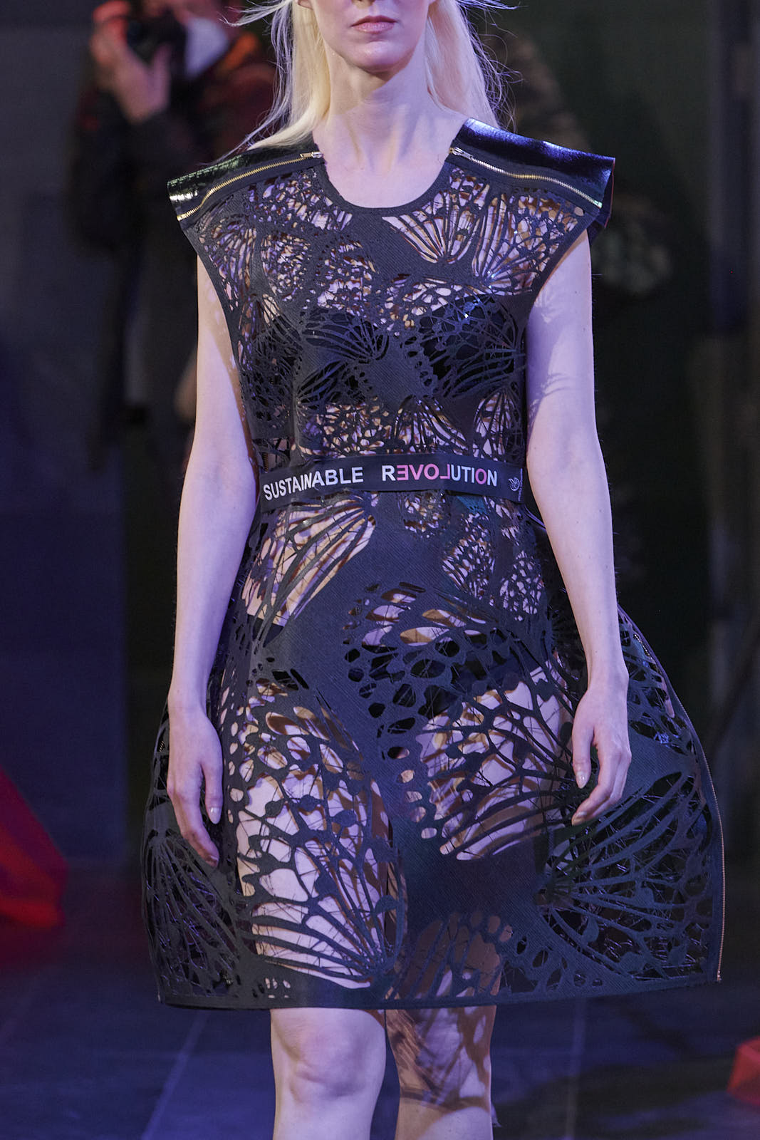 Las nuevas creaciones de María Lafuente buscan transmitir la fortaleza y el coraje que nacen ante una dificultad. La sostenibilidad vuelve a alzarse como concepto imprescindible en la colección, para la que la diseñadora vuelve a experimentar con nuevas técnicas y materiales. Siempre innovadora, Lafuente ha subido a la pasarela un vestido realizado mediante impresión 3D con tejido TIRE-X, un proyecto que ha desarrollado junto a SIGNUS y Lowpoly.
